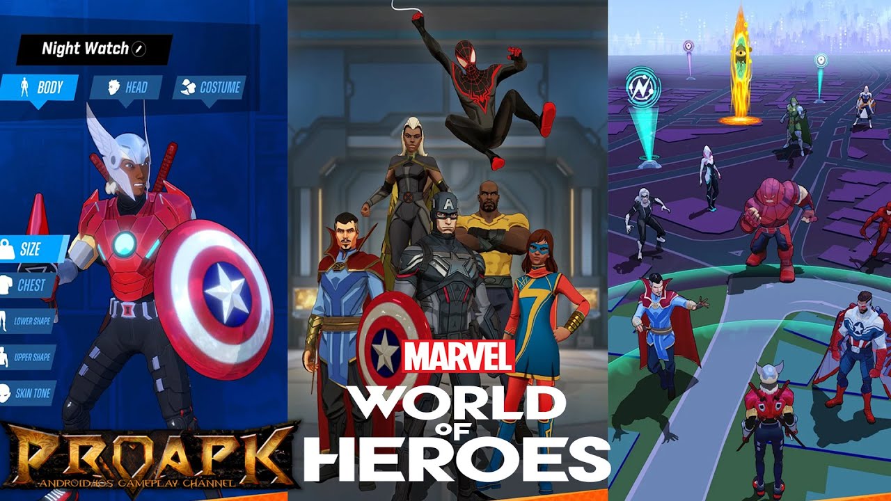 Ойыншылар 3 негізгі костюмнің бірін таңдау арқылы аватарларын жасай алады: X-Men, Web Warriors және S.H.I.E.L.D. Агенттер. Ойыншылар суперқаһарман әлемдерінің бірінде керемет түрде өздерін тапқан «апаттардың» рөлін алады. Доктор Стренж, Майлз Моралес және Капитан Америка оларға негіздерді үйретеді. MARVEL World of Heroes, сіз өз қалаңызды аралап, супер зұлым адамдармен, соның ішінде Қара мысықпен кездесуге болатын кезекті шайқастарды ұсынады. Ойыншының максималды зақымдану үшін комбинацияларды бірге пайдалана алатын батырлар тобы бар екенін ескеріңіз. MARVEL World of Heroes графикасы 3D және мультфильмді болып табылады, бірақ батареяның зарядының азаюына фондық бағдарламалық құрал мен нақты уақыттағы геодеректер жинағы көбірек әсер етеді. Жалпы, қуат банкін сатып алуға кепілдік беріледі.